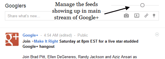 We can add users into Circles and reduce or optimize the number of updates shown on the main feed. This means if someone is updating Google+ a 100 times a day, I simply have to put him in a Circle from which I get minimal feeds.