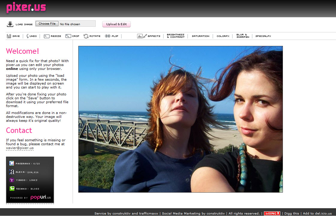 Pixer.us is a great online photo editing tool which is free and easy to use. Pixer.us safety info and online photo editing, editing photos online, digital photo processing suggestions.