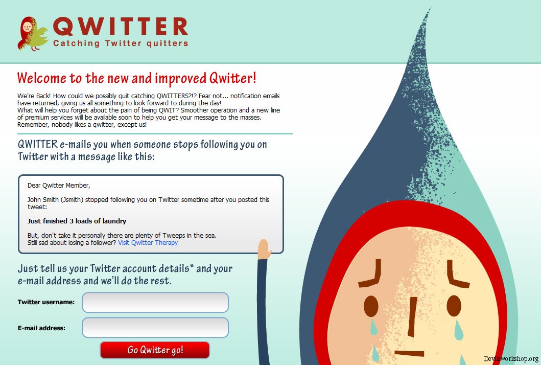 Qwitter is a online tool that is designed to let you know my mailing you when someone stops following you. If someone stops following you it send you the mail that “Certain person stopped following you.” <link>
