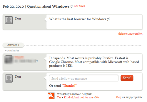 - Ask a question which is specific and Aardvark displays it around to people with relative expertise. The answers are then displayed to you. 🙂