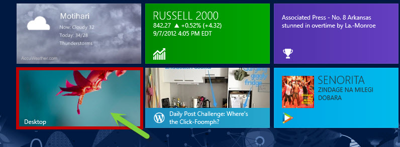 • First of all switch to the Desktop by clicking on the Desktop tile on the Start Screen.