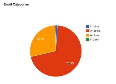 - Email categories help users understand the volume of email that your are managing and how you are managing them. A pie-chart shows various how many emails are archived, in Inbox, with Labels and in Trash.