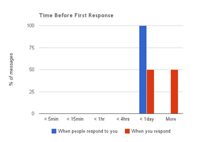 - Most importantly it shows time before first response to emails that you receive.