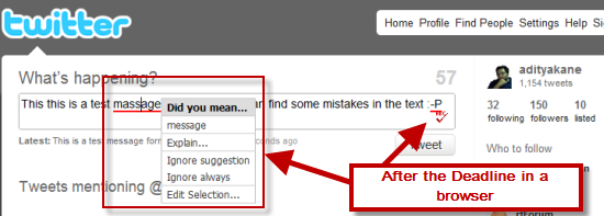 - You might wonder why not use the inbuilt correction from the browser. I found ‘After the Deadline’ far more advanced. It does check for context even if the spelling of the word is correct. This is helps in the case you when I write the word ‘thing’ in place of ‘think’. Most browser correction software cannot pick this up.