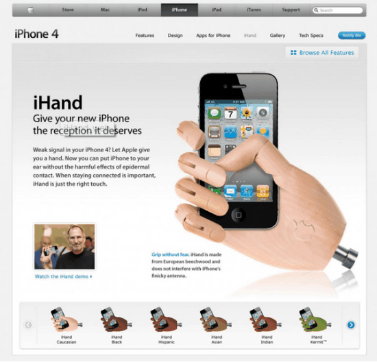 The detail of this spoof is funnier with ideas like it will in various tones like iHand Caucasian, iHand Black, iHand Indian, iHand Asian. 😛