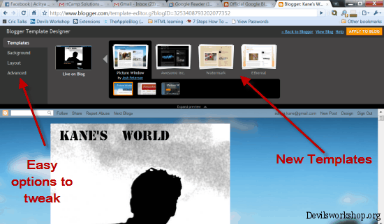 Almost every budding blogger starts of with blogger and then moves on to WordPress. Now that I am blogging professionally and surrounded by professional Bloggers I tend to forget many thousands of bloggers are not professional and basically end up blogging as a way to express their opinions rather than to make a living. Blogger now has released its template designer as default for everyone and not only in its draft section.