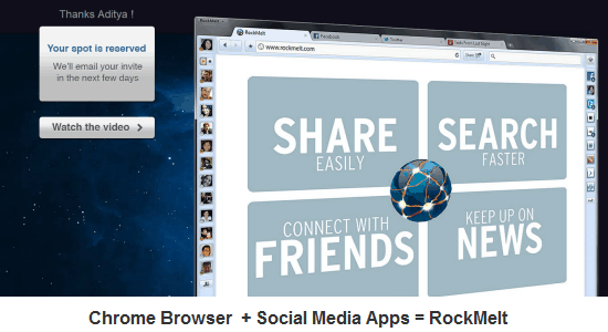 Meanwhile you can sign-up for RockMelt with your Facebook account. It will send you an invitation soon so you can use RockMelt browser. This has actually helped create a lot of buzz about RockMelt because invites are available to people who get invited to RockMelt. I guess a viral campaign is a nice way to build up publicity for a browser.