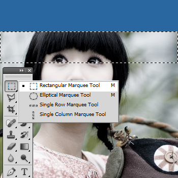 Step 4: Now select the Rectangular Marquee Tool and draw rectangles as shown below and fill them with colors.