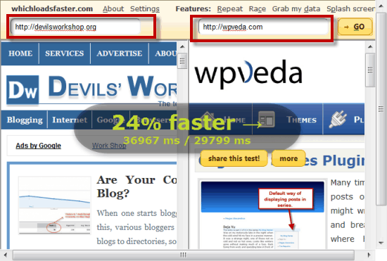 - The image above showed two websites being tested for loading speed. We used Devils’ Workshop and wpVeda.