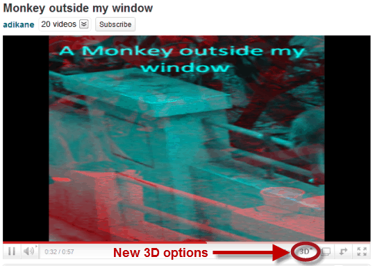 Thanks to Mani Karthik for the tip about an Easter egg in YouTube which allows users to allow their videos to be viewed in 3D.