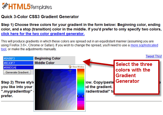 3 Color Gradient Generator with CSS 3