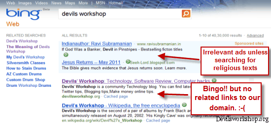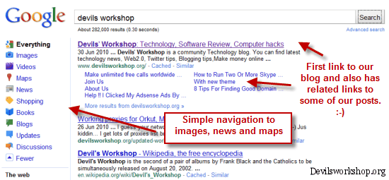 - I admit that this search query was a little too obvious as I do not think someone will search for Devils Workshop but I decided to check this one out for the basic layout and how search results are presented.
