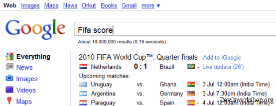 Fifa World Cup 2010 is currently underway and I wondered if we looked up search results how will both the search engines show up the results.
