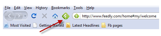 - When the browser re-opens, the Feedly home page will open automatically. Notice the green icon now beside the address bar.