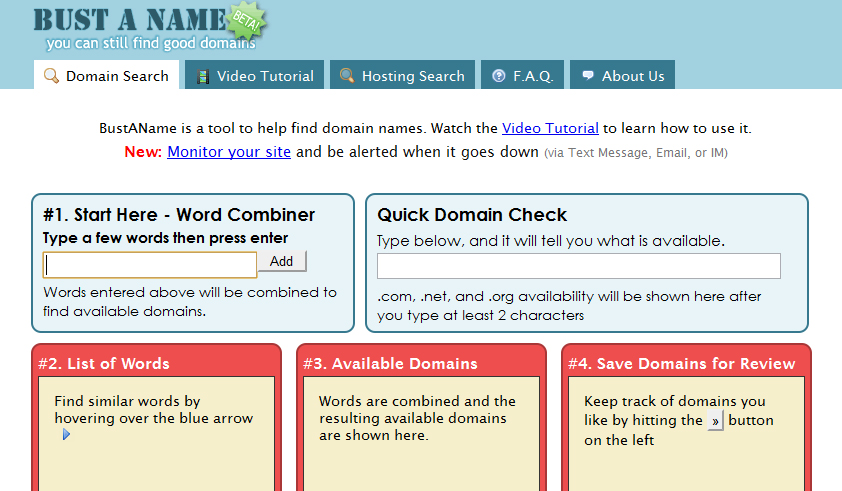 Bust A Name : Its one of the best domain naming website. You can search for your preferred Domain name or else you can use the online tool to create a new one by filling the preferences.