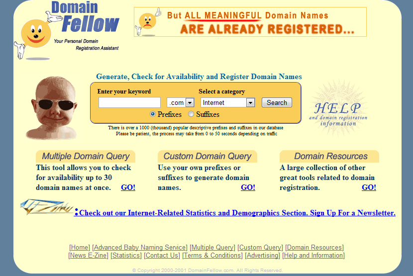 Domain Fellow : It provides the services like domain name generation, creation and query services. It combines the keywords given by you with prefixes and suffixes and generates the list of available domain names.