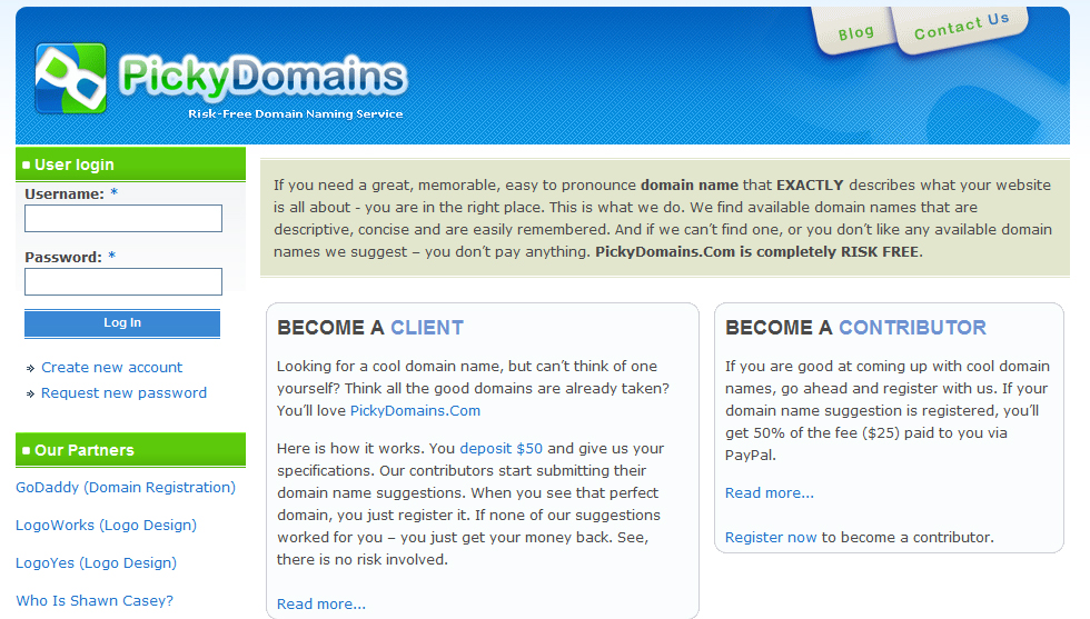 Picky Domains : Picky Domain defines itself as a RISK free domain naming service. If you are willing to generate great, easily memorable, easy to pronounce domain name that which reflects the what you website is all about. They will charge 50$ for domain search, if you are unhappy with the results then you will get full refund. Its been one of the best Domain naming generator website.