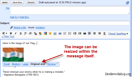 A few days ago I wrote about and also created a video showing how Gmail allows us to drag and drop files as attachments from the desktop rather than looking them up manually and attaching them. Gmail Labs had a feature to include images within a email message. Now they have mixed both features and you can drag and drop images while composing your email.
