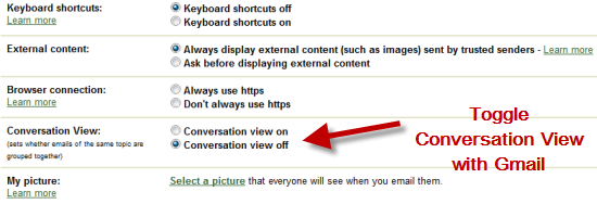 Opt out of Conversation view with Gmail