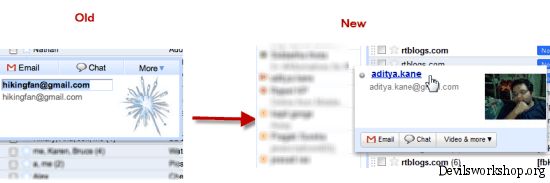 The old contact card was not very pretty but allowed inline editing of the name of the person. Like you can see in the image above. Now with the new format of contact cards clicking on the name takes you to the contacts editor within Gmail. So here I guess Gmail has chosen style over functionality. This feature was very useful for Orkut users who had contacts with weird names which reflect Orkut account names.
