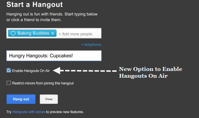 - Start a hangout with your Google+ friends. A new option to broadcast Hangouts will be available.