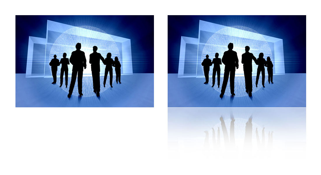 I will show steps by which you will be able to take the image to the left and transform it with a reflection like the one to the right. (See image below).