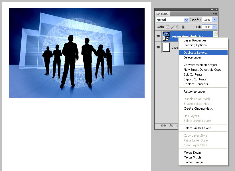 - Select the image layer and simply right-click on it for duplicate layer.