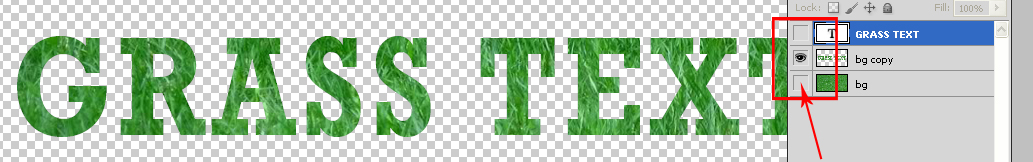 - We can see the background grass image cut out in the shape of the text. ( See the image below)