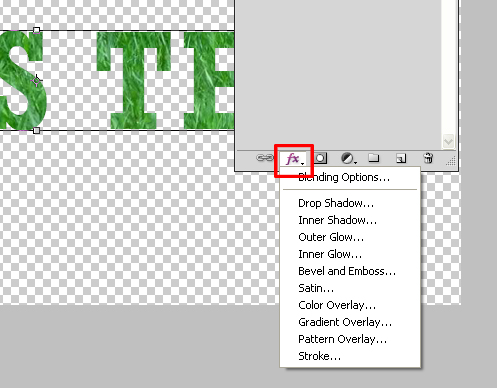 - Now we give more style to the text layer. Goto the layer palate and click style icon at the bottom of the palate. (See the below image)