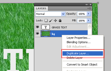 We have one image and two layers. One is the background or the grass layer. The other one is the text layer.
