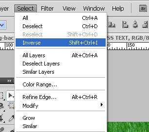 - After making selection on text layer go to Select >>Inverse and then click on it.