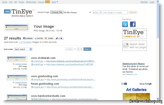 Here also, simply upload the image on the website, and it comes up with the results. Some of the uses of TinEye search engine are –