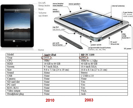 Apple has had its fair share of bad press and criticism when it comes to the iPhone 4 but recently I came across this interesting post on Codewordhank.com which showed in a comparative chart that the iPad was actually inferior to a HP TC 1100. This may not be true as the engineering and design might surely be better but in the chart below you will see that most technical specifications are better if not as good as the iPad.