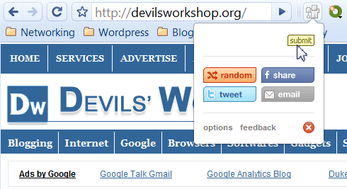 Delicious Bookmarks are my favourite. I really do not use this as a bookmark facility. Unlike Stumble and Digg I use Delicious to look up what my friends and colleagues find useful. So Delicious for me is a way to get back to some webpages or sites I really liked. With Chromeβs extension for Delcious I could add any page to my Delicious account.