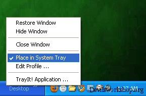 TrayIt! is a handy tool that lets you organize your taskbar by providing you the functionality to choose the programs which you like to place in system tray. The app is made to place the minimized background programs on your system on to the system tray, where it takes the form of a small icon as in the screenshot above.