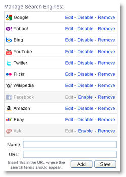 Firefox, IE and Safari have an address bar to type website url’s and a search bar, that facilitates search as per requirement, providing search results in the same tab. In google chrome, developers combined the address bar and search bar. Although, you can add as many search engines to the settings in chrome, but, this way one is restricted to use the search engine that is default to the browser, and the settings have to be changed every time to perform search on desired search engine, unlike firefox, where you can easily change the search engine by simply selecting the right one from drop down menu attached to search bar.