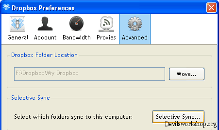 - Click on advanced tab and click Selective Sync button.