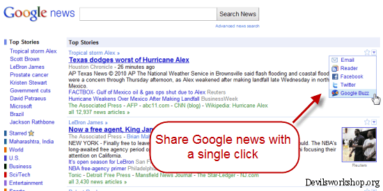 As seen in the image above Google News links can be shared across most social networks. Personally I like using Google News as it really sorts the new out for me and also has a local emphasis on the content that is filtered in. This new redesign is not available for people outside US, but if you change the content to US centric this new format is available.