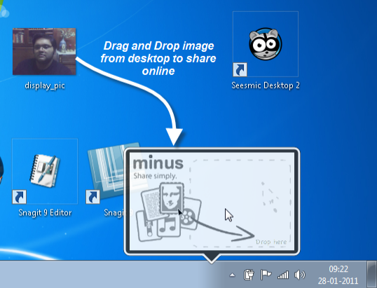 - It is quite simple. All you do is drag and drop the file to the taskbar icon. Here you will see a Minus pop-up. Drop the image or file into the pop-up and it will display a URL for you where you can get access to the file online.