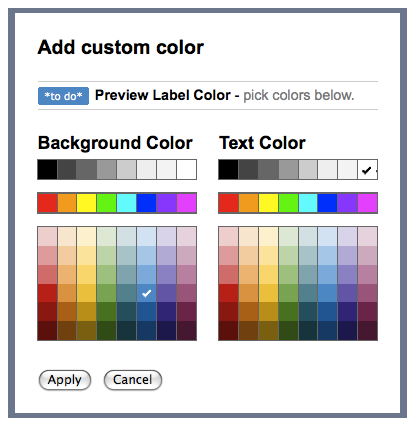 Coloured labels make life easy with gmail when you receive so many emails from different people. You can easily arrange the mails in labels. And when your world is colourful enough, you would love to add these colours to your labels too! You can choose from over 4000 possible color combinations to help distinguish and organize your labels. Add custom color from the regular labels interface. And there you have it!