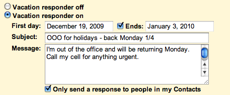 If you are using vacation responder, you must be knowing that when turned on, it automatically sends a reply to people who mailed you when you were on a holiday. And with Vacation Dates, you can specify the dates in advance, for which you will be away! You need not to turn on the vacation responder once you have submitted the dates.