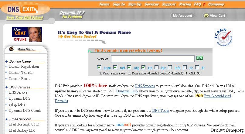 DNS Exit : Offer free dynamic DNS and static DNS to any top level domains. DNS supports Dynamic IP that allow you to run websites, ftp, or mail servers or Cable Modem lines with dynamic IP.