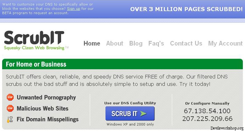 ScrubIT is a FREE recursive DNS server that regulates what comes into your home or business. ScrubIT offers clean, reliable, and speedy DNS service FREE of charge. It filters the DNS scrubs out the bad stuff and is absolutely simple to setup and use.