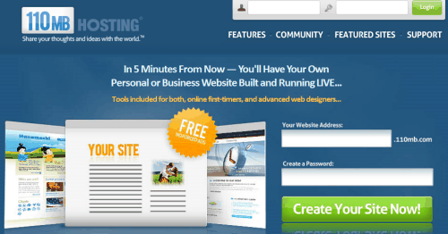 110mb as its URl suggest allows free hosting upto 110 MB.