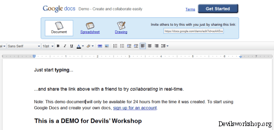But to get more customers and newer customers to get interested in using Docs, Google has a demo page which allows for creating documents which are automatically saved for upto 24 hours and with no need to sign in to a Google account.