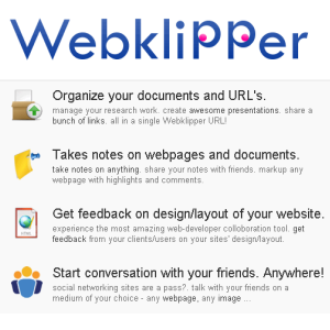 Being a blogger means I often end up sharing online material with friends and colleagues. Images and webpage screenshots are the order of the day. Often I share with others with some remarks or questions. Webklipper is a website which allows creating online clips of webpages, images and even with PDF files. 🙂