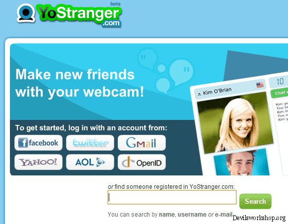 YoStranger is a video chatting sites on which you can chat with random people and make new friends. It requires signup process therefore we can’t say it an anonymous chat site. You can sign in with your Gmail, Facebook, Twitter or Open ID account. After signing in it asks you to create a user-name and giving an email ID.